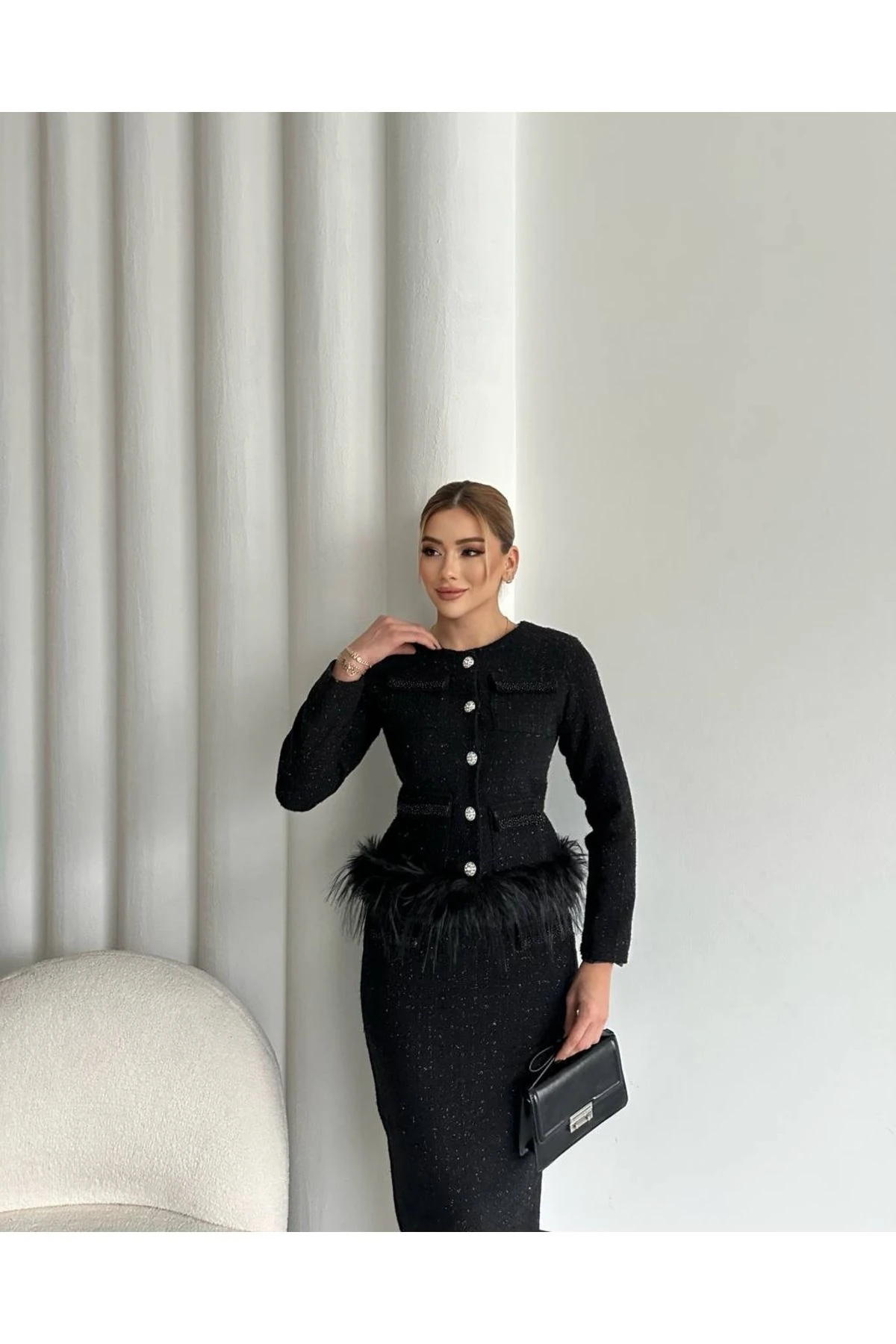 - İthal tüvit kumaştan üretilmiş, incili detaylarıyla göz alıcı bir görünüm sunan kadın elbise hırka takım.; - Normal bel kesimiyle rahat bir kullanım sağlarken, kemersiz tasarımı sayesinde şıklığına zarif bir dokunuş ekler.; - Design koleksiyonuna ait bu parça, tüm sezonlarda stil sahibi görünmenizi sağlayacak.; - Kırışmaya dayanıklı özelliği ile pratik kullanım sunarken, düz deseniyle kolay kombinlenebilirliği ön plana çıkarır.; - Otriş detaylarıyla feminen bir hava katılan bu takım, her yaş grubundan kadının gardırobunda yerini almayı hak eder.; - Fleto cep detaylarıyla fonksiyonellik kazanan bu hırka-elbise takımı, geniş paça kesimiyle modern siluetleri tamamlar.; - Tekli paket içeriği sayesinde kolayca satın alınabilir; her zaman yanınızda taşıyabileceğiniz pratik bir seçenektir.; - Bisiklet yakası ile sade ve zarif bir görünüm sunarken, uzun kollu tasarım soğuk günlerde ekstra koruma sağlar.; - Gündüzden geceye her ortama uyum sağlayan bu takım, stil sahibi kadınların tercihi olm Devamını Göster