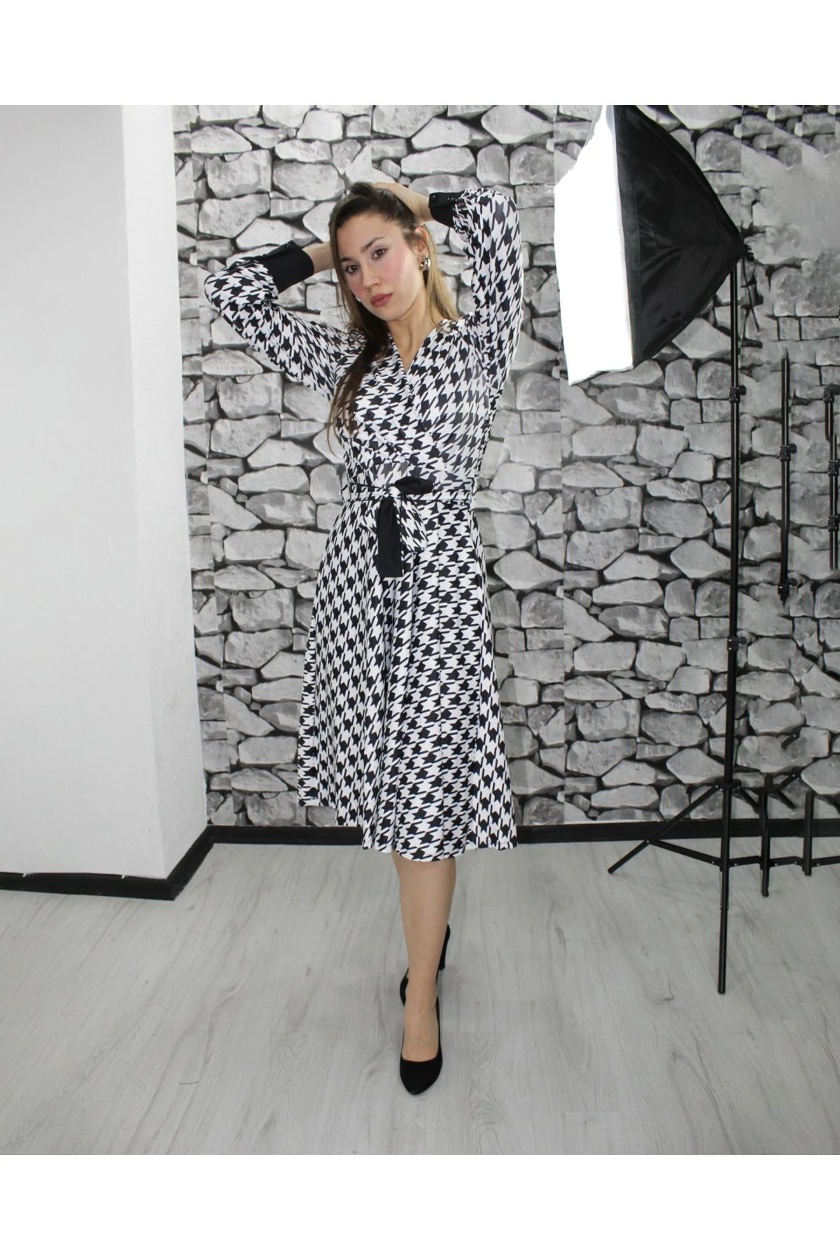 Geometrik desenleriyle dikkat çeken V yaka tasarım, şıklığı ve modern çizgileri bir arada sunar.; Scuba kumaşın sunduğu esneklik ve rahatlık sayesinde gün boyu konfor sağlar.; Midi boyu ile hem günlük kullanım hem de özel anlarda tercih edilebilir.; Regular kalıp, tüm vücut tiplerine uyum sağlayacak şekilde tasarlanmıştır.; Uzun kollu ve orta kalınlıkta dokusuyla mevsim geçişlerinde ideal bir seçimdir.; Tüm yaş gruplarına hitap eden tasarımıyla geniş bir kullanıcı kitlesine sahiptir.; Renkli geometrik deseniyle enerjinizi yansıtın ve stilinizi öne çıkarın.; Kuşak detayı belinizi zarifçe sararak feminen bir siluet oluşturur.; Design koleksiyonunun parçası olarak modern çizgilerle donatılmıştır.; Dokuma kumaşı dayanıklılık ve uzun süreli kullanım vaat eder.;